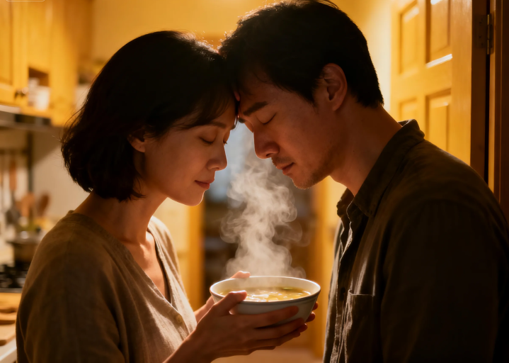 有个读者曾跟我分享:她老公创业初期,每天回家都耷拉着脑袋。她不会帮他谈业务,也不懂财务报表,却会每天煮好他爱喝的萝卜汤,听他骂“今天又被客户坑了”,哪怕什么都不说,只是拍拍他的背。后来老公生意做大了,说:“我见过太多会帮我赚钱的人,可只有你,能让我觉得‘累了也没关系’。”
